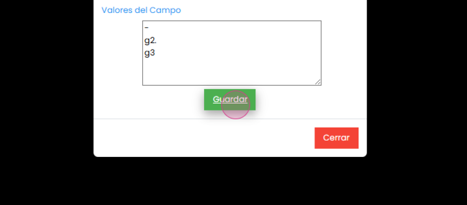 Paso 7: Una vez que hayas realizado los cambios necesarios, haz clic en el botón Guardar para asegurar que las modificaciones se apliquen correctamente. Es importante realizar este paso antes de dar de alta nuevos usuarios que necesiten los nuevos valores.