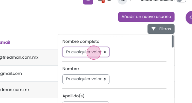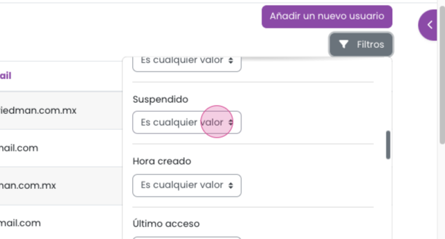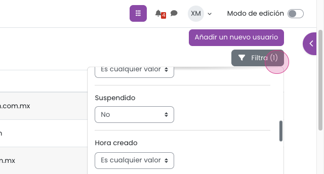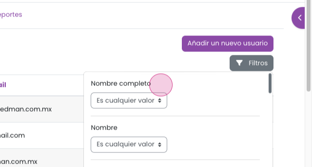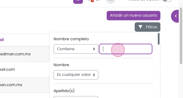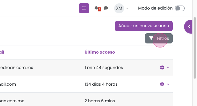 Paso 3: Para buscar a un usuario, haz clic en Filtros.