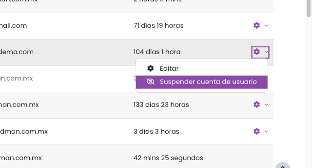 Paso 6: Para editar la información de un usuario, haz clic en el ícono de engranaje que se encuentra a la derecha de su nombre.