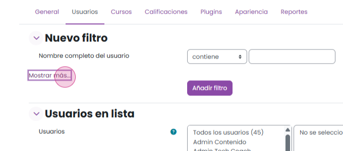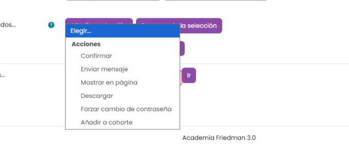 Agregar a cohorte: incluye al usuario en un grupo o equipo, lo cual puede ser útil para inscribir usuarios en un curso.