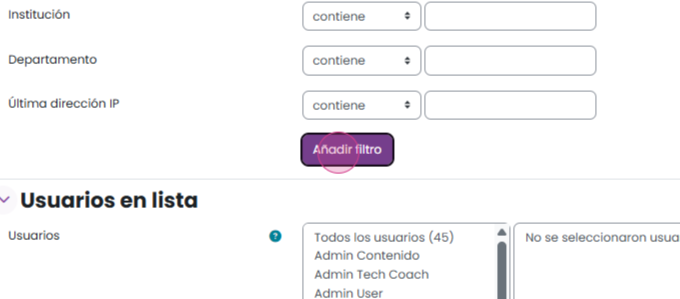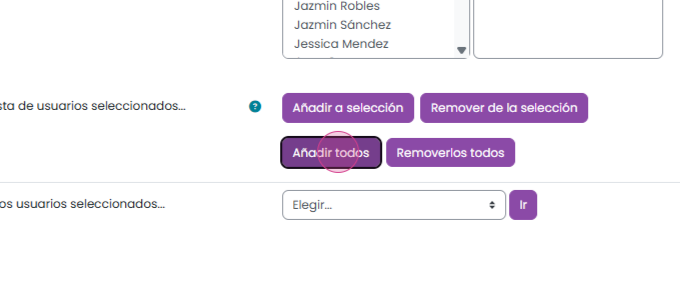 Paso 5: Esto generará una lista de usuarios que cumplen con las características seleccionadas. Debajo de este recuadro, encontrarás cuatro botones. Con ellos podrás elegir la acción que deseas que realicen los usuarios de la lista. Para seleccionarlos, elige a los usuarios correspondientes y luego haz clic en Añadir todos.