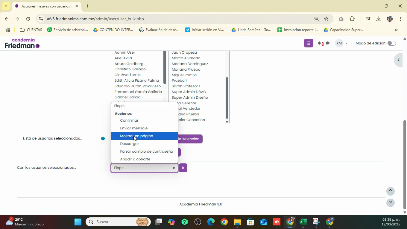 Mostrar en la página: permite ver a los usuarios en una lista, de la misma manera que al acceder al listado de usuarios.