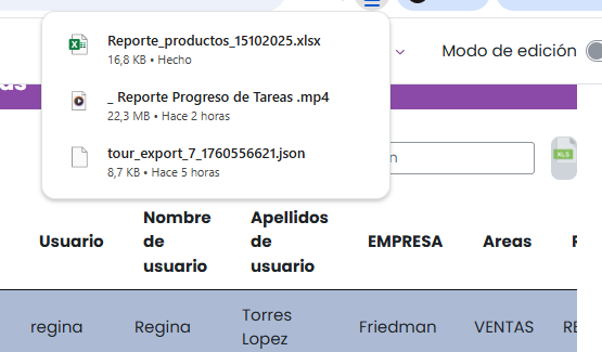 Al igual que en el inventario, aquí puedes buscar, ampliar registros visibles o descargar el reporte en Excel.