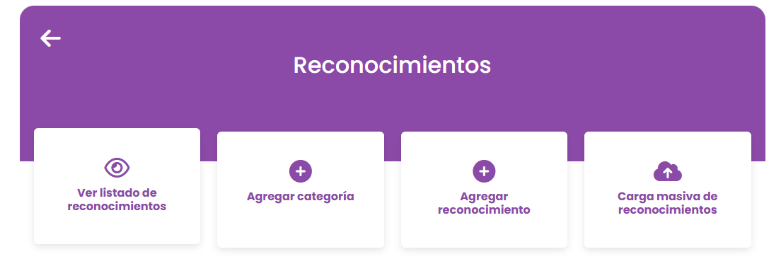 Los reconocimientos son distintivos para valorar la participación, esfuerzo o logros de los colaboradores. Puedes asignarlos, organizarlos por categorías, y consultarlos fácilmente en el sistema.